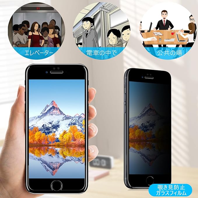 【プライバシー】アイフォンSE第三世代 のぞき見防止 ガラスフィルム 特別なブラインド加工により、真正面から見ると高透過率ではっきり見えますが、画面を左右から見ると画面が段々真っ黒になります。情報漏洩を気にせず安心して使うことができ。