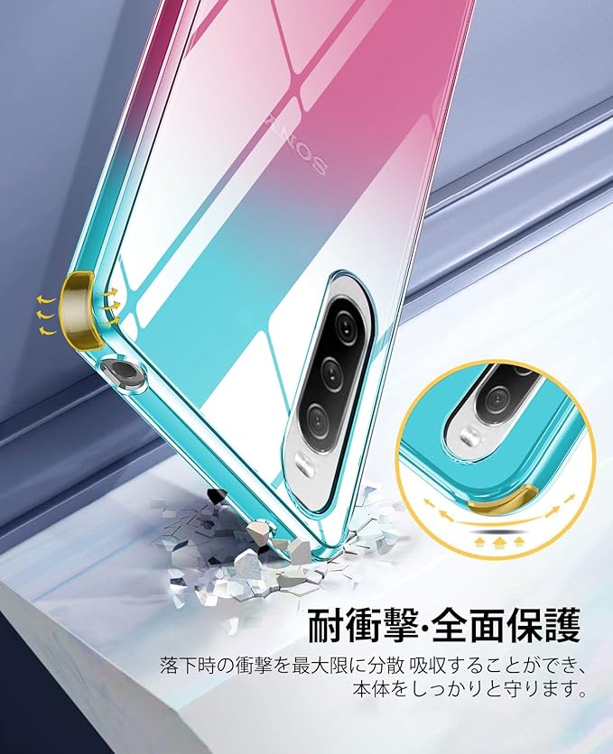 Xperia 10 Vケース クリア 薄型 TPU 耐衝撃 グラデーション色 ケース 指紋防止 擦り傷防止 軽量 人気 ?の粉