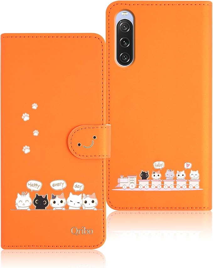Qribo Xperia 10 V ケース 手帳型 えくすぺりあ 10V ケース Xperia 10 第5世代 ケース 手帳型 シンプルなのに可愛いデザイン エンボス加工猫柄 うれしい気持ち 6.1インチ対応 SO-52D SOG11 カバー エクスペリア10 V ケース Xperia 10V スマホケース SO-52D ケース 薄型 防水 の耐久性 滑り防止 美しい 贈り物 友達 - オレンジ