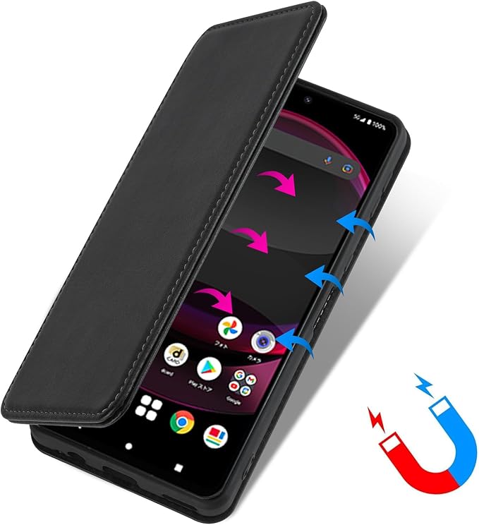 AQUOS R8 Pro ケース 手帳型 SH-51D カバー 革 カード収納 内蔵マグネット式 ブラック