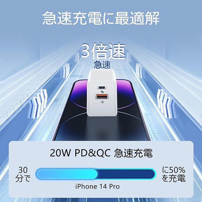 【折りたたみ式&コンパクト】従来の充電器と比べ、20W 急速充電器は折りたたみ式デザインを採用しており、よりコンパクトで軽量になっており、持ち運びが簡単です。 この充電器は簡単に折りたたむことができ、荷物のスペースを取らずにサイズと重量を減らすことができ、ハンドバッグ、ポケットにも簡単に入れることができます。 毎日