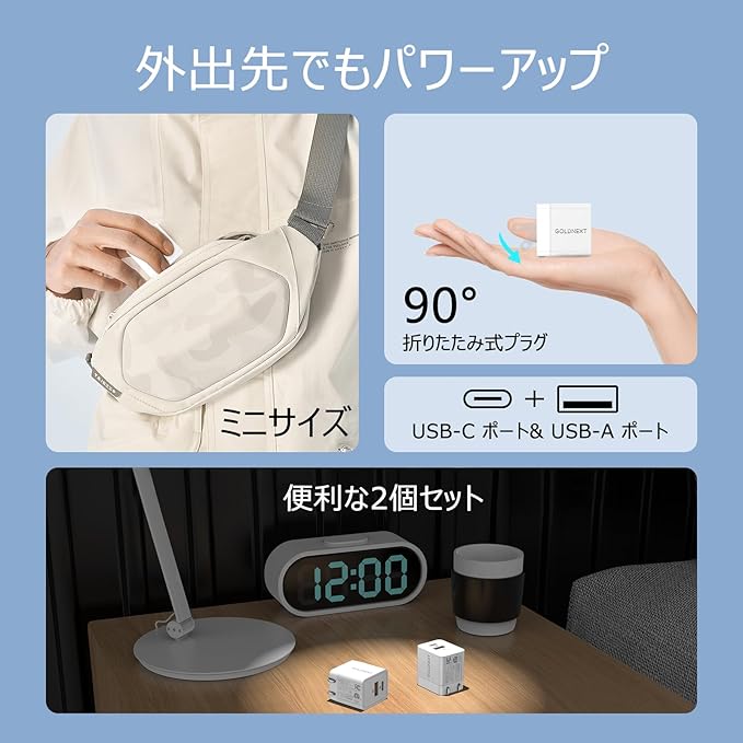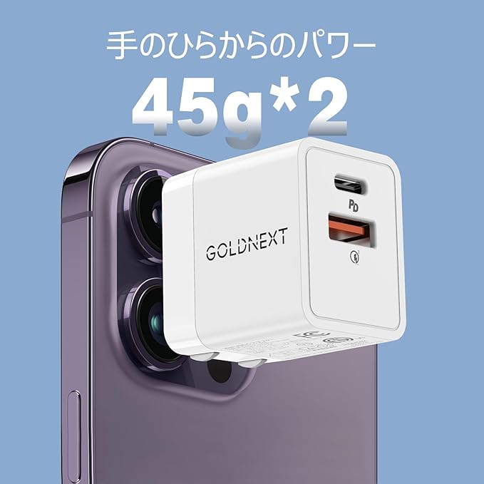 GOLDNEXT 20W PD 充電器 2個セット 急速充電器 Type-C 2ポート(USB-A&USB-C) ACアダプター 折りたたみ式 高速充電器 タイプC 充電器 PSE技術基準適合 PD3.0/QC3.0/PPS規格対応 スマホ(Android/iOS)/タブレ