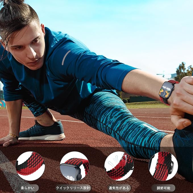 CeiBand ナイロンバンド 対応 Apple Watch 38mm 40mm 41mm 42mm 44mm 45mm 49mm サイズあり 時計バンド 編み 伸縮性 交換ベルト 通気性 柔軟性 クイックリリース 腕時計ベルト スマートウォッチバンド ベルト (レッド/ブラック 38mm/40mm/41mm)