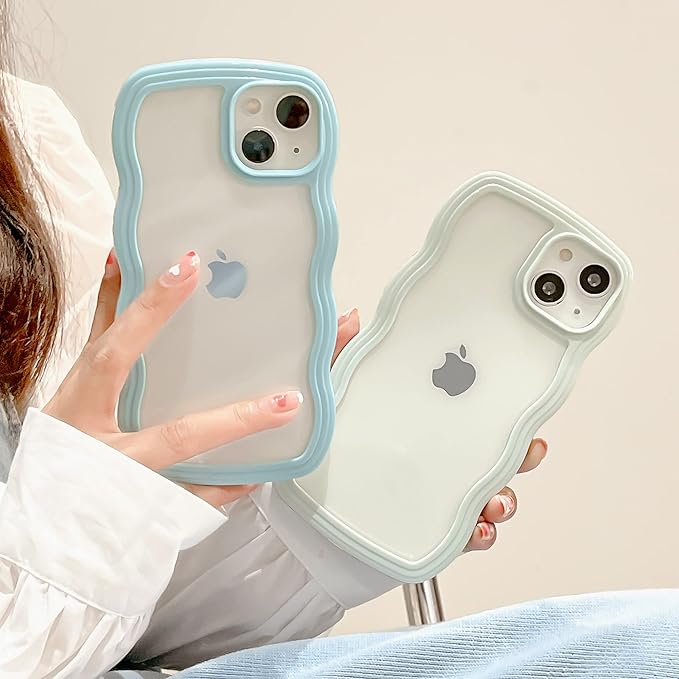 QLTYPRI iPhone 15ケース クリア TPUカバー おしゃれ 韓国 可愛い 透明 薄型 軽量 耐衝撃 スマホケース ワイヤレス充電対応 ストラップホール付き アイフォン 15 ケース 6.1インチ 対応 - ライトブル