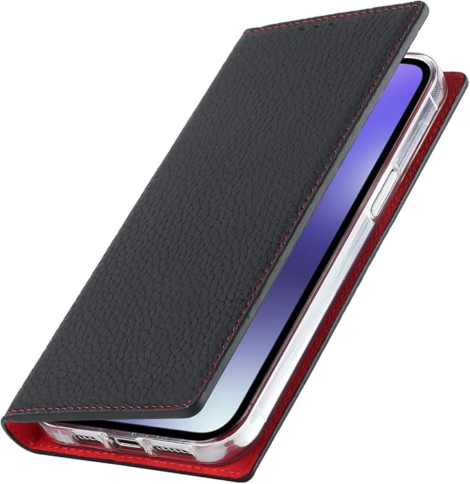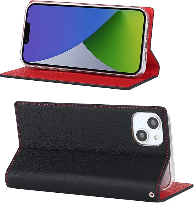 Eastwave アイフォン For iPhone 15 Plus ケース 本革 牛革 For iPhone 15plus ケース 手帳型 For iPhone15plus カバー 手帳 本革 柔らかい 本皮 スプラットホール付き スプラット同梱 内蔵マグネット- ブラック