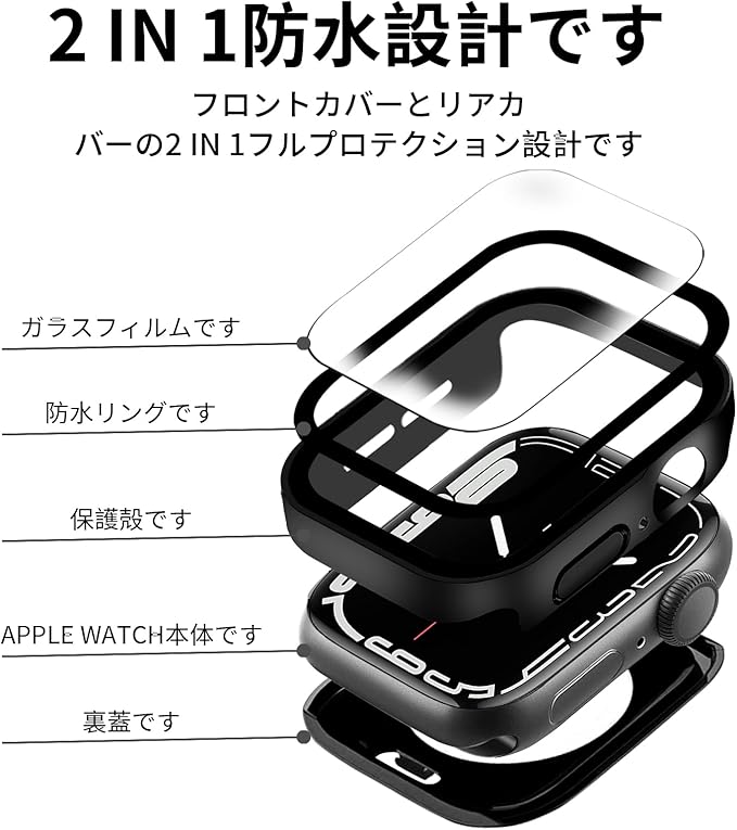 【2重構造、ダブル保護】今までの保護ケースを基に改良し、防水機能が向上しました。耐久性と柔軟性にPC素材+硬度9Hの強化ガラス、背面のハードフレームと組み合わせて、360フルボディ保護、偶発的な落下から時計を保護します。