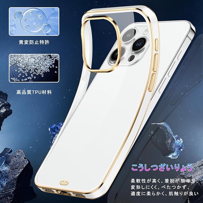 【背面クリア・メッキ加工】iPhone15proケース( 6.1インチ)背面は透き通った高い透明度を誇ります。フレームは、iPhone 15proの美しさを際立たせる多層メッキ技術でデザインされています。※クリア背面が薄いため、ワイヤレス充電などの機器へのアクセスが容易です。