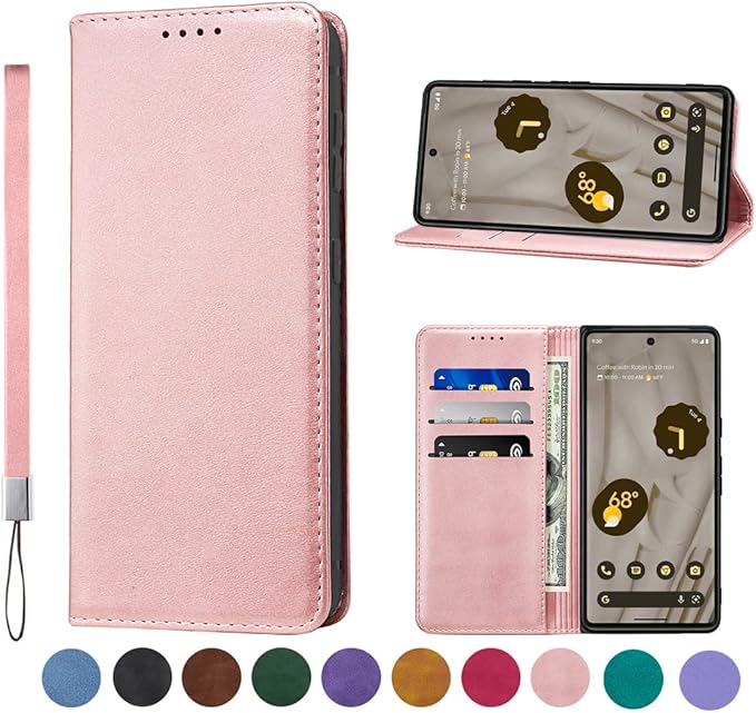 Google Pixel 8 ケース 手帳型 高質PUレザー Google Pixel 8 カバー Pixel 8 ケース グーグル ピクセル8 ケース 手帳型 耐衝撃 内蔵マグネット開閉式 ベルトなし スマホケース おしゃれ カードポケット スタンド機能 便利 スプラット同梱 携帯ケース (ピンクゴールド)