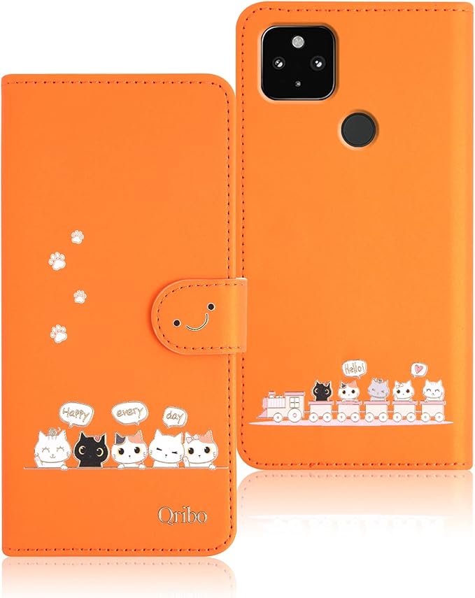Qribo Google Pixel 4a ケース 手帳型 ピクセル4a 4G ケース 手帳型 Pixel4a カバー シンプルなのに可愛いデザイン エンボス加工猫柄 うれしい気持ち 5.81インチ対応 Pixel 4a 4G 用手帳カバー Google Pixel 4a 4G スマホケース グーグルピクセル4a ケース 薄型 防水 の耐久性 滑り防止 美しい 贈り物 友達 - オレンジ