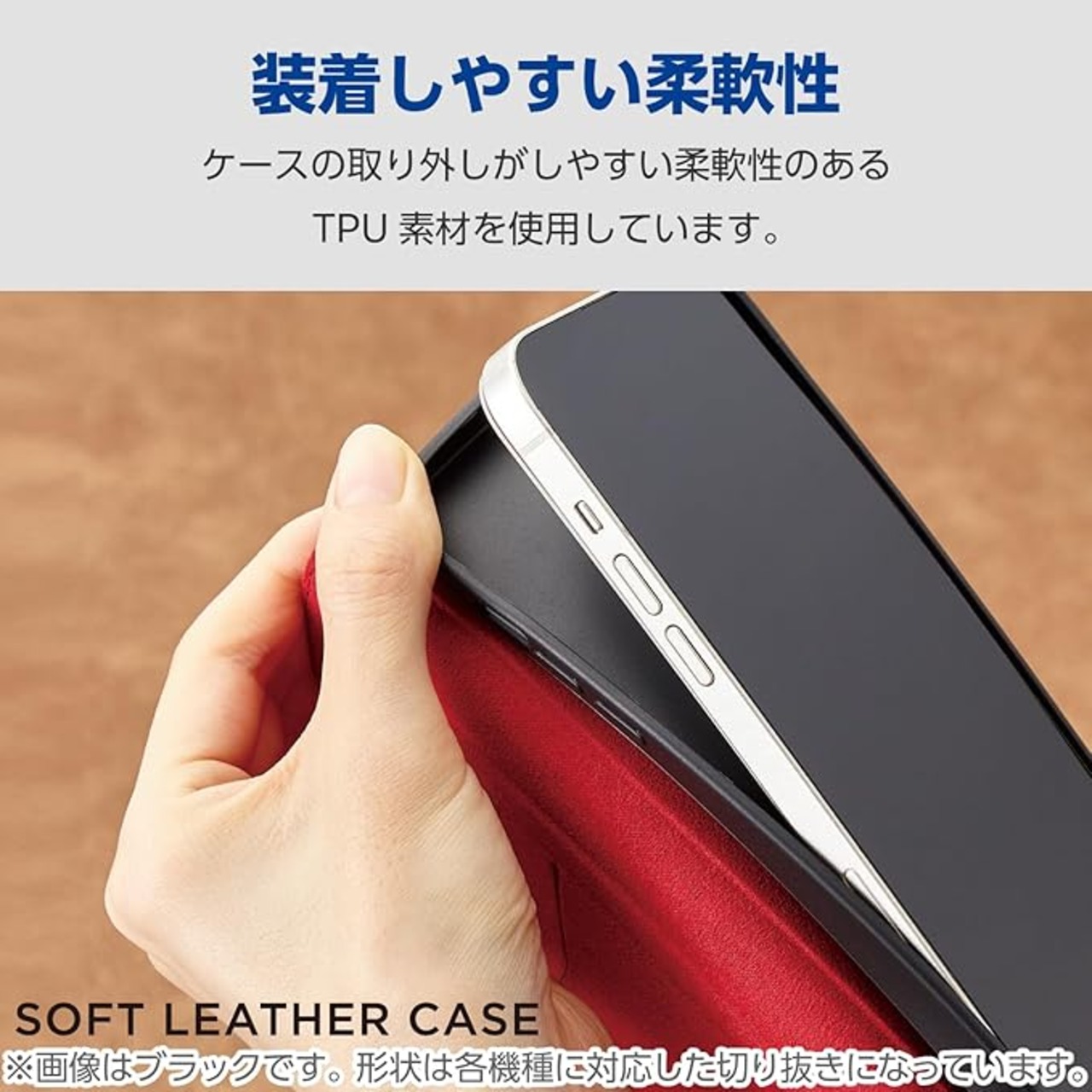 便利な機能を搭載した、革のようなやわらかな風合いのソフトレザーケース(手帳型)です。