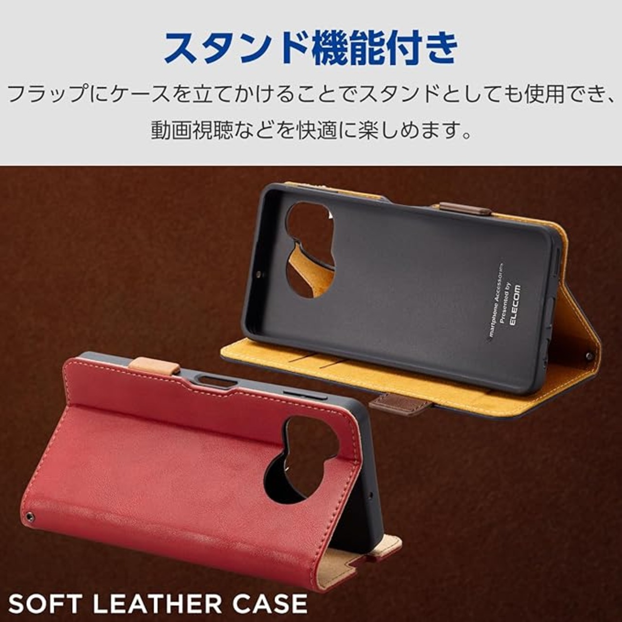 エレコム AQUOS sense8 (SH-54D / SHG11) ケース レザー カバー 手帳型 マグネット フラップ 耐衝撃 衝撃吸収 ストラップホール付 スタンド機能付 ステッチ レッド PM-S234PLFYRD