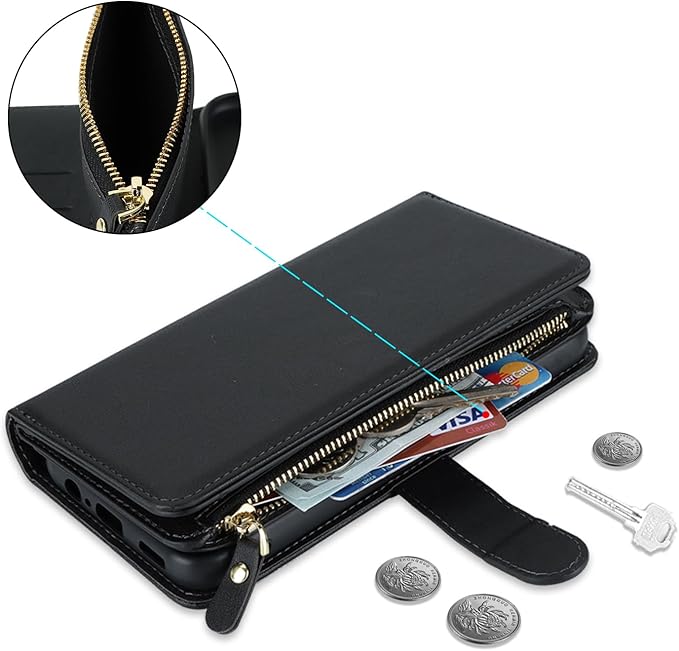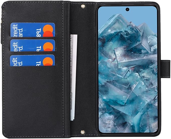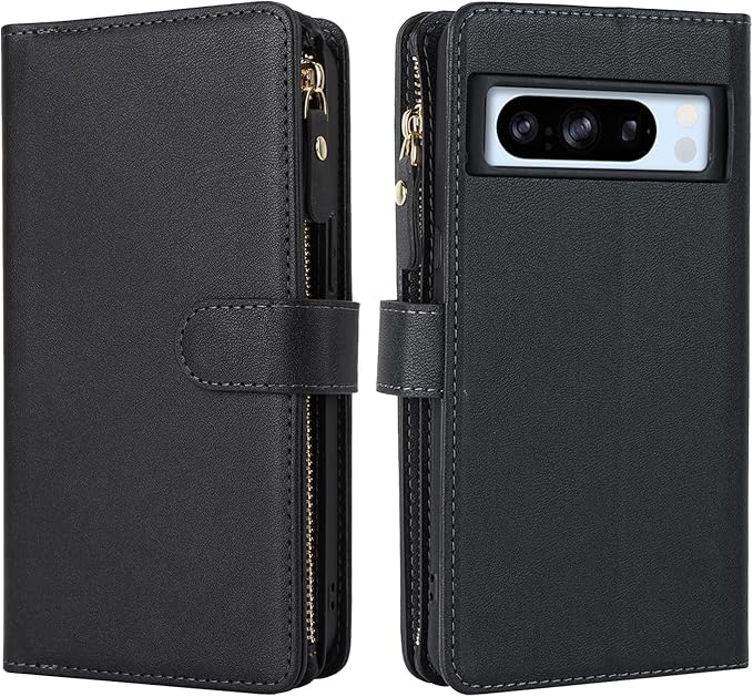 Pelanty for Pixel 8 Pro 縄掛けケース手帳型 携帯カバー 肩掛け斜めがけ ショルダー 合成皮革+TPU マグネット Google pixel8 pro 財布型カバー ICカード お札入れ小銭入れ大容量 収納ポケット スタンド機能 グーグル ピクセル8pro 6.7インチ ストラップ付き 落下防止 耐衝撃 全面保護(肩縄付き-ブラック)