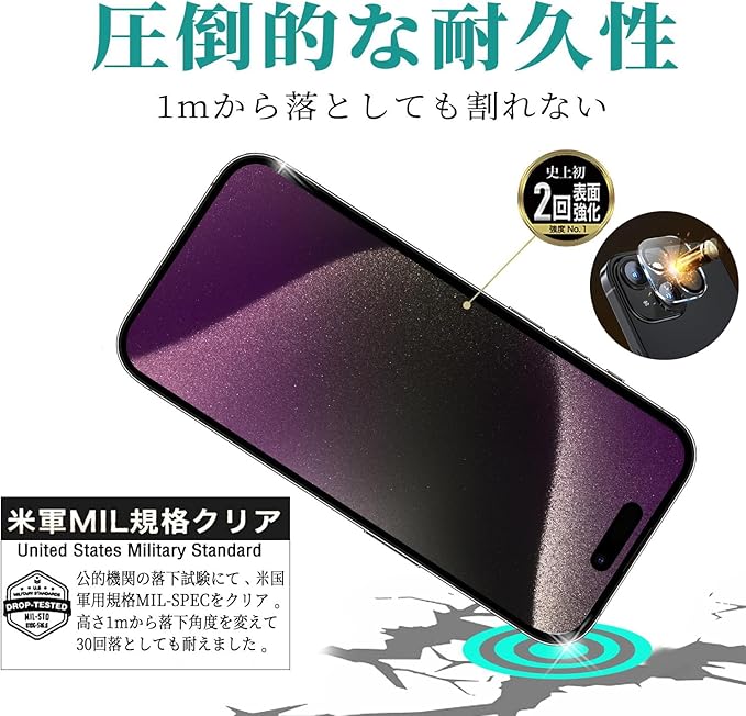 【ブルーライトカット 】 iPhone 15 Pro Max ガラスフィルム 【2枚】+ iPhone 15 Pro Max カメラフィルム 【2枚】【ガイド枠付き】 液晶保護 フィルム ブルーライト 強化ガラス アイフォン 15プロ マ