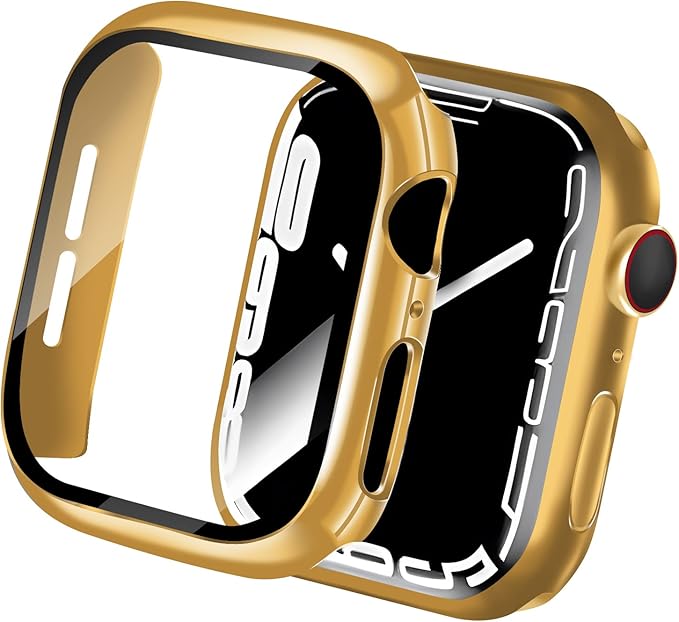 【2024改良モデル】CABOBE 対応 アップルウォッチ カバー 45mm メッキ加工 アップルウォッチ9/8/7 ケース Apple Watch 9/8/7 ケース 対応 Apple Watch カバー ガラスフィルム 一体型 PC素材 耐衝撃 全面保護 対応 45mm ゴールド