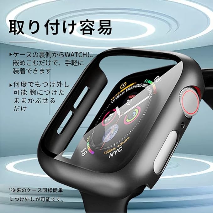【高透過率・高感度タッチ】ガラス部には薄いガラスを採用し、透明度が高く、Apple Watch本来の美しさを損ないません。アップルウォッチ本体にフィットし、つけている感覚が少なくアップルウォッチ本来の快適なつけ心地を再現、従来のタッチセンサーの感度を保持しています。ケース内側には特別加工し、曇りや虹色を防止でき、いつも画面をク
