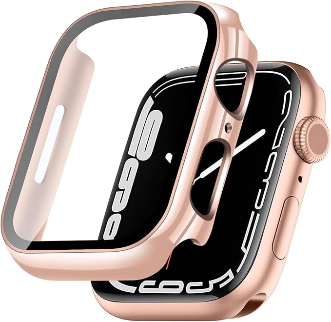TEMEDO 対応 アップルウォッチ カバー Series SE2/SE/6/5/4 Apple Watch ケース PC素材 メッキ加工 Apple Watch カバー ガラスフィルム 一体型 アップルウォッチ ケース 全面保護 高耐久 高透過率 装着簡?(40mm,光沢のローズゴールド)