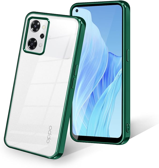 OPPO Reno7 A ケース クリア OPPO Reno9 A ケース OPG04 A201OP カバー 耐衝撃 メッキ加工 スマホケース ストラップホール付き 軽量 薄型 透明 持ちやすい TPU素材 グリーン