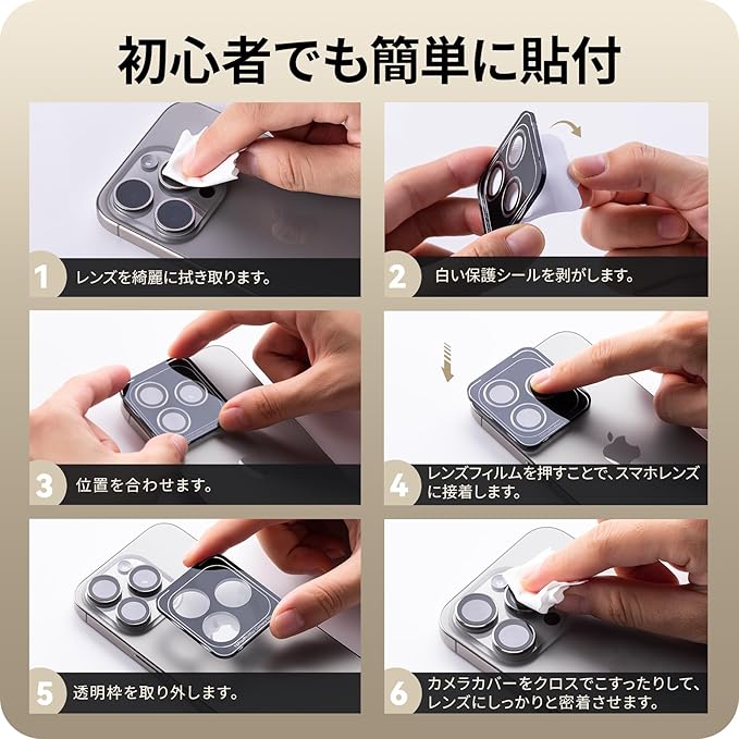【一体感抜群・ケースとの併用】iPhone15シリーズと同じ色にすることで一体感と高級感を実現しました。また無駄なガラス部分を取り除くことで、市販のほとんどのケースと問題なく併用できます。貼り付けの際は、カメラカバーをクロスでこすってレンズにしっかりと密着させてください。粘着剤は主に黒い縁に付着していますので、取り付け後、黒い縁に沿ってこすることをお勧め致します。