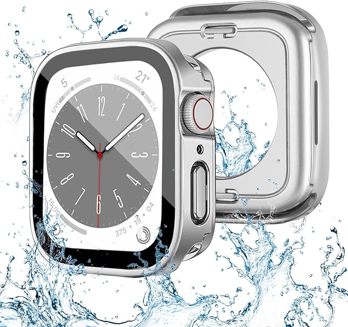 【2 in 1防水設計】POLINK 対応 アップルウォッチ カバー Series 9/8/7/SE/6/5/4 45mm PC素材 強化ガラス 対応 Apple Watch カバー防水 一体型 新デザイン 3D直角エッジ超薄型 高耐久 耐衝撃 高透過率 指紋防