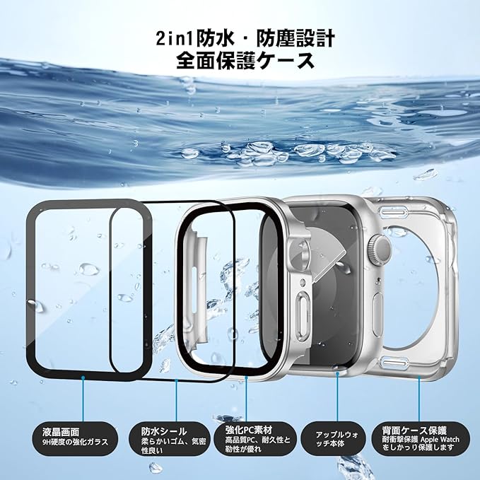 【全面保護】この製品はPC+ 強化ガラス素材を採用して、日常生活での衝撃から Apple Watch を保護します。硬度 9H の強化ガラスで、超クリアな画面を提供して、なお画面の損傷を防止および回避し、Apple Watchをしかっり保護します。