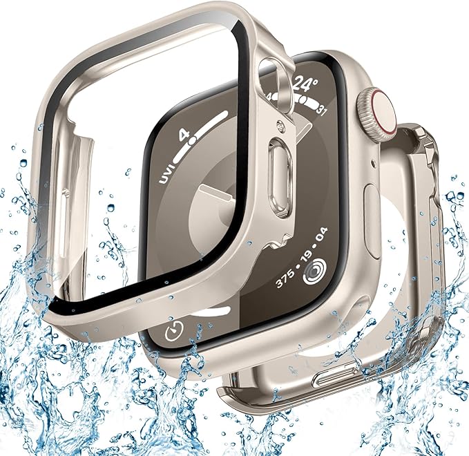 【2in1保護設計】POLINK 対応 アップルウォッチ カバー Series 10/9/8/7/SE/6/5/4 41mm PC素材 強化ガラス 対応 Apple Watch カバー防水 一体型 新デザイン 3D直角エッジ超薄型 高耐久 耐衝撃 高透過率 指紋防止 対応 Apple Watch ケース 全面保護 スターライト