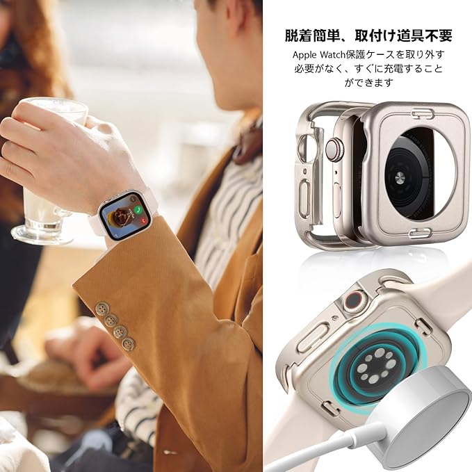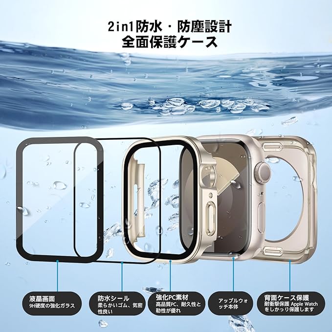 【全面保護】この製品はPC+ 強化ガラス素材を採用して、日常生活での衝撃から Apple Watch を保護します。硬度 9H の強化ガラスで、超クリアな画面を提供して、なお画面の損傷を防止および回避し、Apple Watchをしかっり保護します。
