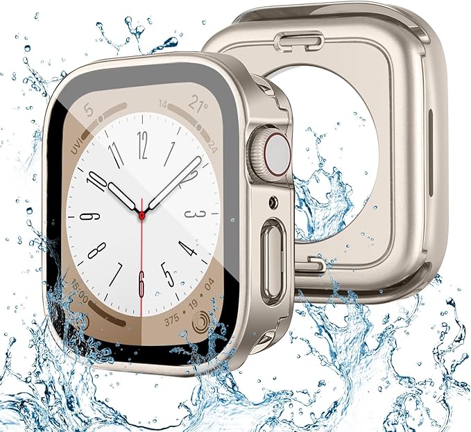 【2 in 1防水設計】POLINK 対応 アップルウォッチ カバー Series 9/8/7/SE/6/5/4 41mm PC素材 強化ガラス 対応 Apple Watch カバー防水 一体型 新デザイン 3D直角エッジ超薄型 高耐久 耐衝撃 高透過率 指紋防