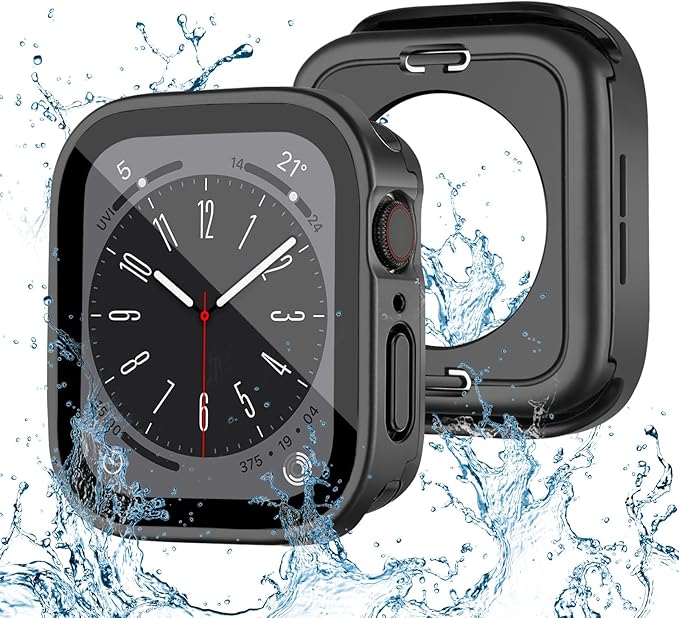 【2 in 1防水設計】POLINK 対応 アップルウォッチ カバー Series 9/8/7/SE/6/5/4 40mm PC素材 強化ガラス 対応 Apple Watch カバー防水 一体型 新デザイン 3D直角エッジ超薄型 高耐久 耐衝撃 高透過率 指紋防