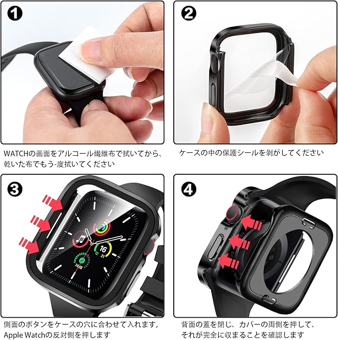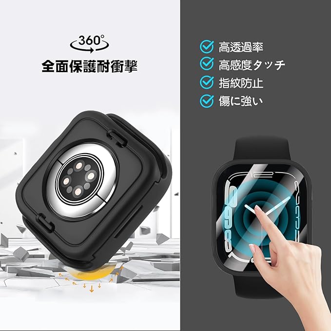 【全面保護】この製品はPC+ 強化ガラス素材を採用して、日常生活での衝撃から Apple Watch を保護します。硬度 9H の強化ガラスで、超クリアな画面を提供して、なお画面の損傷を防止および回避し、Apple Watchをしかっり保護します。