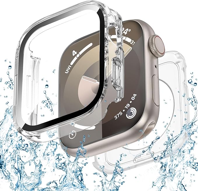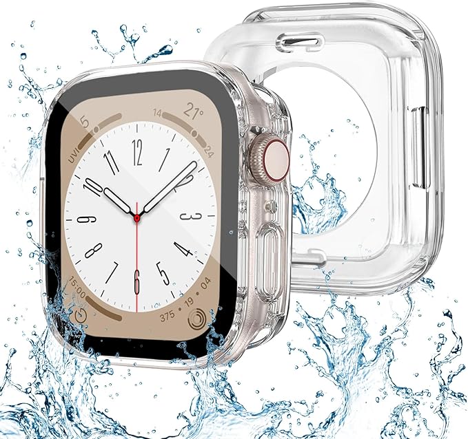 【2 in 1防水設計】POLINK 対応 アップルウォッチ カバー Series 9/8/7/SE/6/5/4 45mm PC素材 強化ガラス 対応 Apple Watch カバー防水 一体型 新デザイン 3D直角エッジ超薄型 高耐久 耐衝撃 高透過率 指紋防
