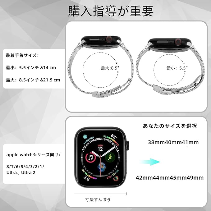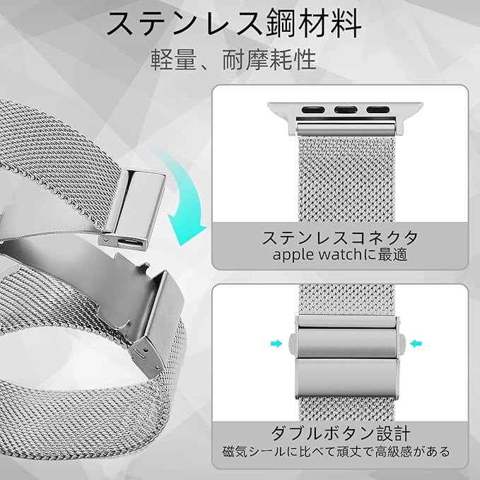 ANGKMA コンパチブル Apple Watch バンド49 mm 45 mm 44 mm 42 mm 41 mm 40 mm 38 mmに対応し、ステンレス鋼金属ベルトは、iWatch Series 9/Ultra 2/Ultra /8/7/6/4/3/2/1男性と女性に適している (42mm44mm45mm49mm, ライトグレ