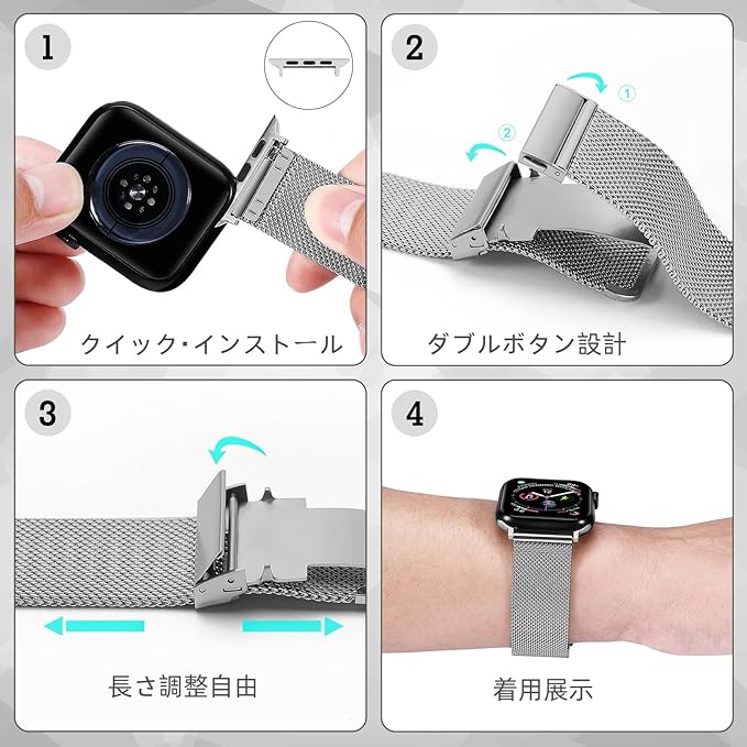 [プロセスと材料]:アップルストラップは高品質の316ステンレススチール素材を使用し、高い硬度と耐摩耗性を備えています。 電気メッキの表面処理、高級、高貴、耐久性があります。 職人技、デザイン、美観など、製造過程で細部まで考慮されているからです。 ハイテクな表面とラグジュアリーなデザインが、あなたのApple Watchをよりファッショナブルにします