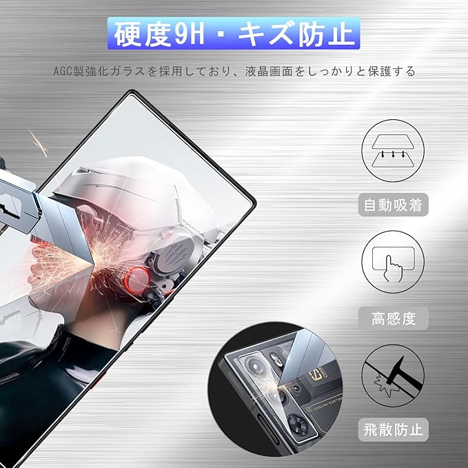 【4枚セット】REDMAGIC 9 Pro ガラスフィルム(2枚入)+カメラフィルム(2枚入)Freesun 9H強化ガラス【旭硝子製】レッドマジック 9 Pro 用 高透過率 耐衝撃 撥油性 気泡防止 飛散防止 自動吸着 RedMa