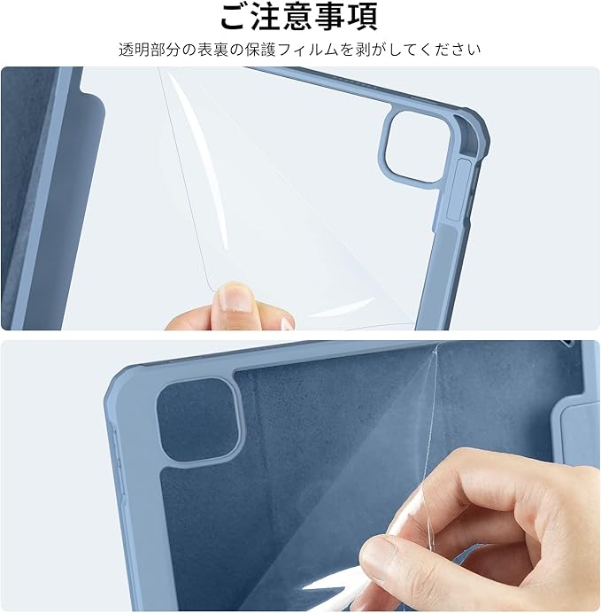 ZKTUYU iPad Pro 11インチ ケース 2022/2021/2020 第4/3/2世代対応 透明アクリルハード Apple Pencil 収納可能 第2世代ペンシル対応 ワイヤレス充電 三つ折スタンド 軽量 薄型 耐衝撃 TPU ボーダースリープ機能 カバー スカイブルー