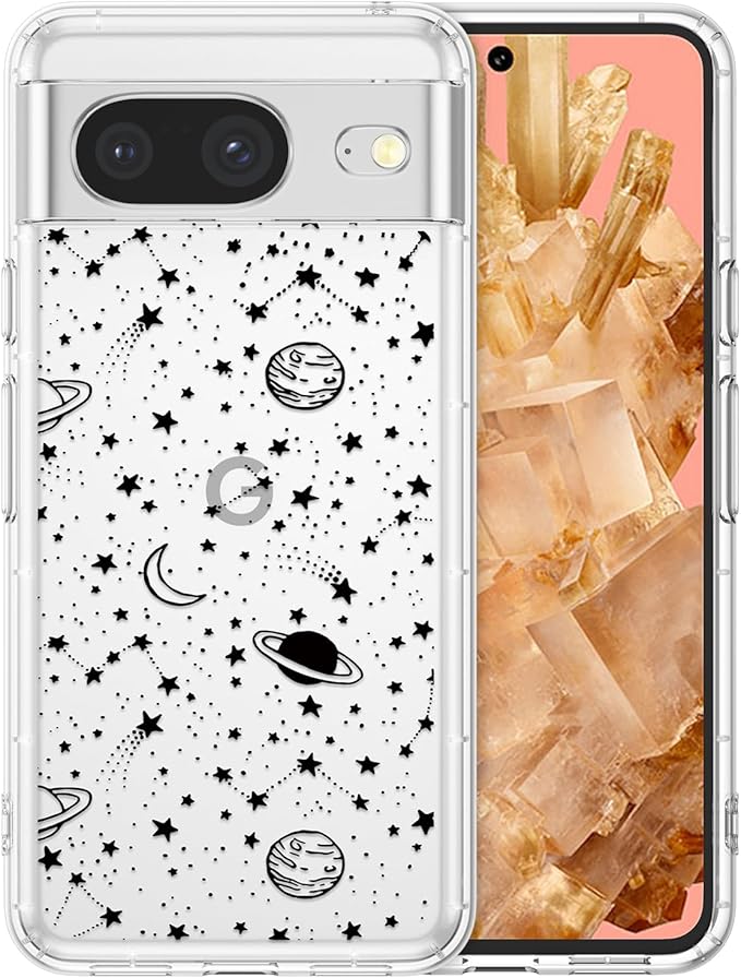 ZTOFERA Google Pixel 8 用プラネットケース クリア 韓国 おしゃれ ケース 星 月 宇宙 ケース 薄型 軽量 かわいい 柔軟な ソフト TPU ケース グーグル ピクセル 8 ケース 人気 女子 耐衝撃 画面レンズ