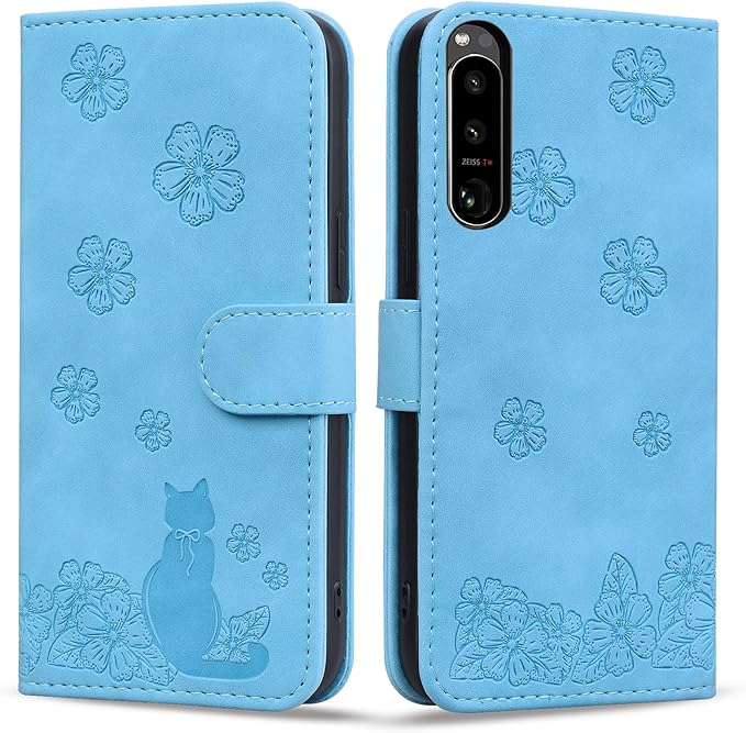KW-LINK Xperia 5 II ケース 手帳型 SO-52A ケース SOG02 カバー かわいい 猫の後ろ姿 携帯カバー ソニー エクスぺリア5 ii ケース 手帳型 Xperia 5 II カバー SO-52A SOG02 ケース SONY Xperia5 ii スマホケース 財布型 スタンド機能 マグネット式 薄型 軽量 美しい 桜の花 - ブルー