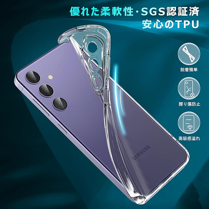 【高品質ドイツ製バイエルTPU素材を採用】ドイツバイエル社の最高級TPU素材を採用。柔軟性が高く着脱が簡単で変形しにくく、ベタつかず適度な柔らかさで触り心地が良い。Galaxy s24の取り外しも簡単であり、装着の際に本体を傷つける心配もありません。手に持った際のフィット感も好評です。耐久性が高く、長くご使用いただけます。