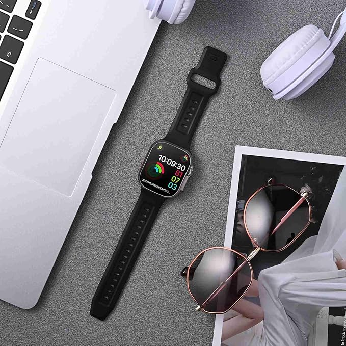[Anbeer] アップルウォッチバンド FKMラバー 交換バンド ピンとタック式交換ベルト 防汗 夏場 男性 女性 iWatch Series 9/8/7/6/5/4/3/2/1/SE/Ultra/Ultra2 全機種対応