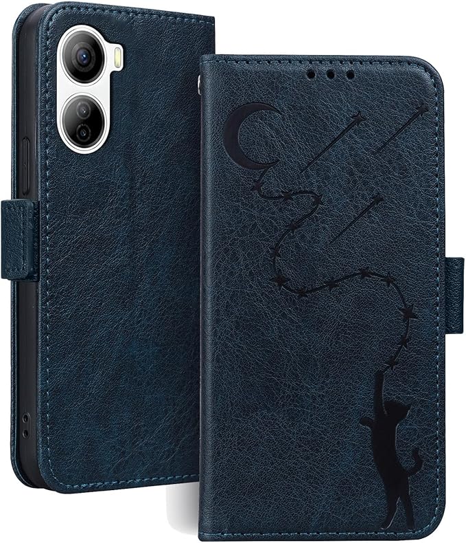 Libero 5G IV ケース a302zt ケース スタンド機能 マグネット カード収納 libero 5g iv カバー 人気 おしゃれ リベロ5g iv ケース 耐衝撃 全面保護 libero 5g ivスマホケース 月と流れ星 可愛い 猫柄 リベロ5g4 ケース 柔らかいTPU スマホ 落下防止 ONETHEFUL zte libero 5g iv ケース - 濃紺