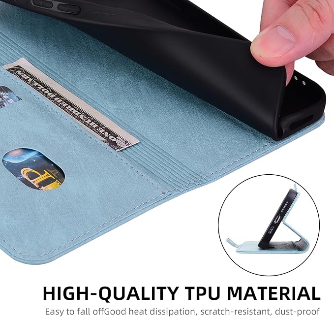 Libero 5G IV ケース a302zt ケース スタンド機能 マグネット カード収納 libero 5g iv カバー 人気 おしゃれ リベロ5g iv ケース 耐衝撃 全面保護 libero 5g ivスマホケース 月と流れ星 可愛い 猫柄 リベロ5g4 ケース 柔らかいTPU スマホ 落下防止 ONETHEFUL zte libero 5g iv ケース - アイスブルー