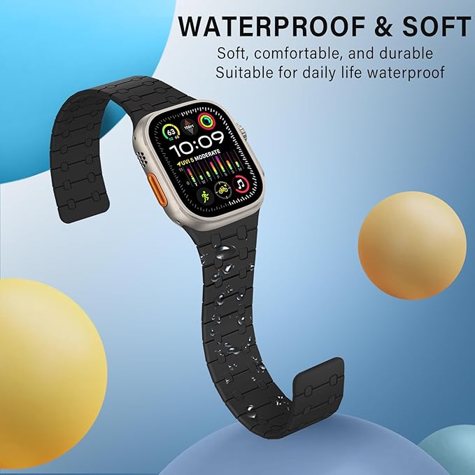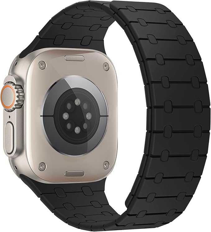 [ZZDZZ] コンパチブル Apple Watch バンド 42mm 44mm 45mm 46mm 49mm 強力なシリコン磁気 防水 に対応 Apple Watch Ultra 2 Ultra シリーズ10 9 8 7 6 5 4 3 2 1 SE(ブラック)