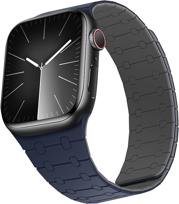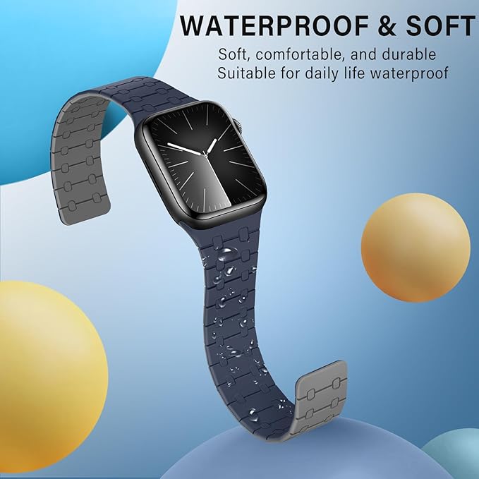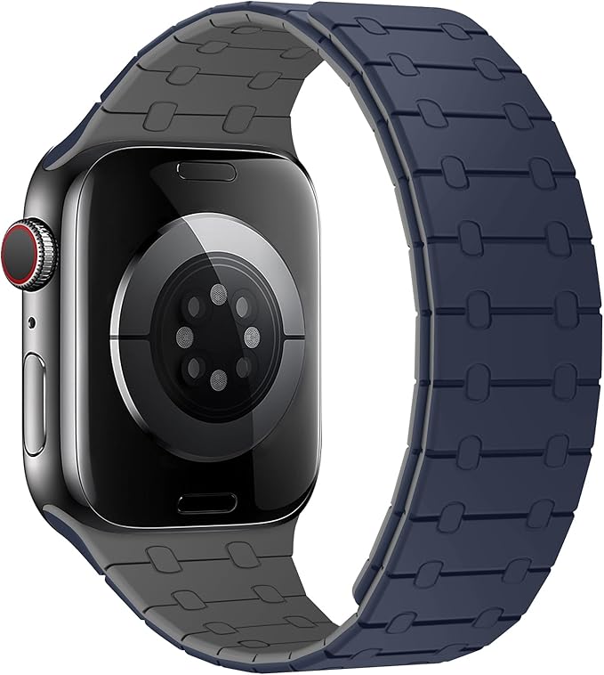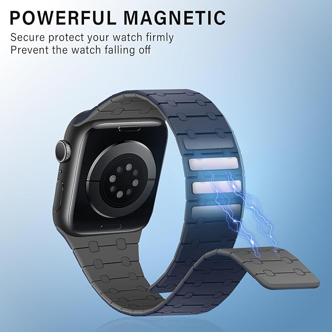 [ZZDZZ] コンパチブル Apple Watch バンド 42mm 41mm 40mm 38mm 強力なシリコン磁気 防水 に対応 Apple Watch シリーズ10 9 8 7 6 5 4 3 2 1 SE(ダークブルー/グレー)