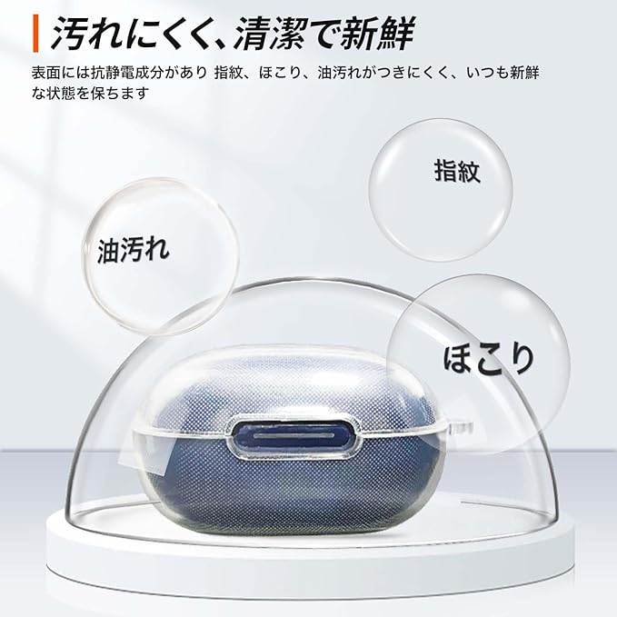 Anker Soundcore P40i 用 ケース 全面保護カバー シリコンケース 【HUKWIMO】 カラビナ付き 耐衝撃 防水 防塵 装着充電可能 全面保護 キズ防止 Anker Soundcore P40i 対応インイヤーヘッドホン用ヘッドホンケース [クリア 透明]