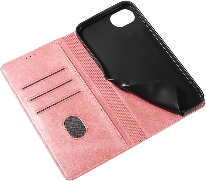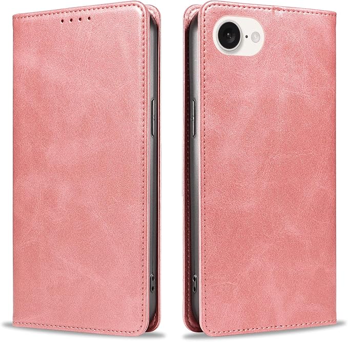 iPhone 16E ケース アイフォン16E スマホケース 手帳型 携帯カバー レザー 耐衝撃 軽量 着脱しやすい 放熱性 マグネット式 カード収納 スタンド機能ケースSE4 対応 360度保護 PinLiSheng (バラゴールド, iPhone 16E 2025)