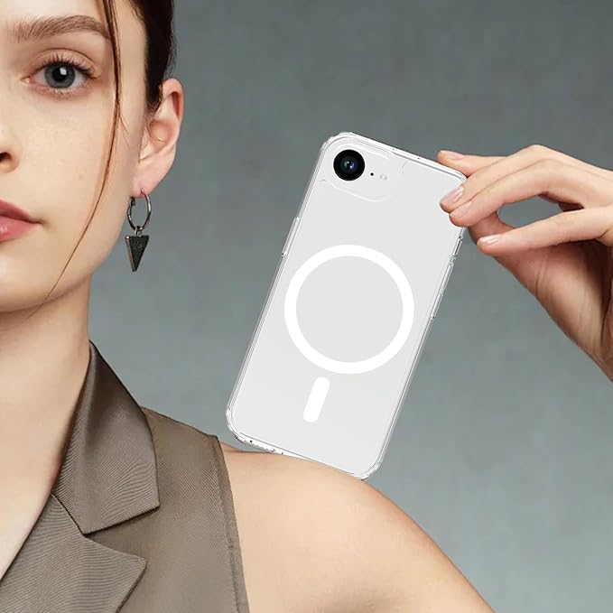 iPhone 16e ケース MagSafe対応 クリア 耐衝撃 軽量 薄型 マグネット搭載 人気 滑り止め PC 傷防止 米軍MIL規格 ワイヤレス充電対応 スマホカバー EUMADOVE (クリア, iPhone 16e)