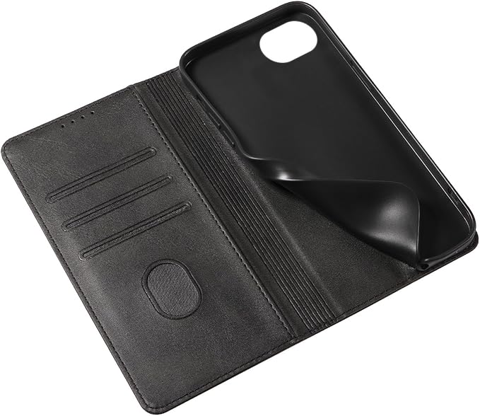 iPhone 16E ケース アイフォン16E スマホケース 手帳型 携帯カバー レザー 耐衝撃 軽量 着脱しやすい 放熱性 マグネット式 カード収納 スタンド機能ケースSE4 対応 360度保護 PinLiSheng (ブラック, iPhone SE4 2025)