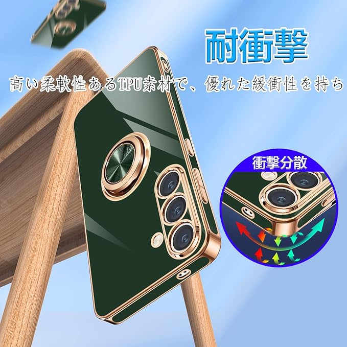 Galaxy S25 ケース リング ギャラクシーs25 SC-51F スマホケース リング付き 耐衝撃 TPU 携帯カバー シリコン スタンド機能付き 360回転車載ホルダー (ダークグリーン)