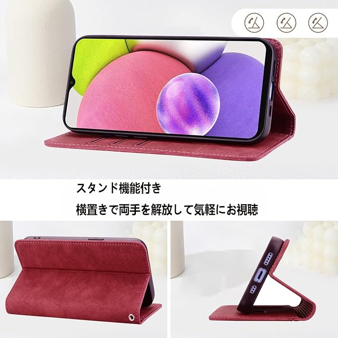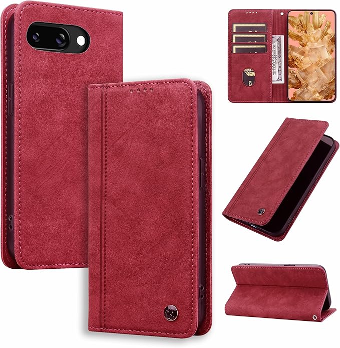 Vokpok上質PU肌感レザーGoogle Pixel 9a 専用 ケース 手帳型 内蔵マグネット カード収納 ピクセル9A 用 財布型 ケース スタンド機能付き 耐摩擦 耐衝撃 全面保護 Pixel 9A スマホケース 軽量薄型 着脱しやすい ケース オシャレで贈り物 グーグルピクセル9a ケース 手帳型, レッド