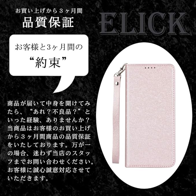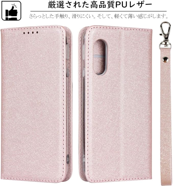 Elick AQUOS sense3 SH-02M SHV45 SH-M12 / sense3 lite SH-RM12 / Android One S7 兼用 ケース カバー 薄型 高級PUレザー 手帳型 マグネット式 ベルトなし ストラップ付き カード収納 クオス センス3 SH-02M SHV45 SH-M12 センス3 ライト SH-RM12 スマホケース ローズゴールド