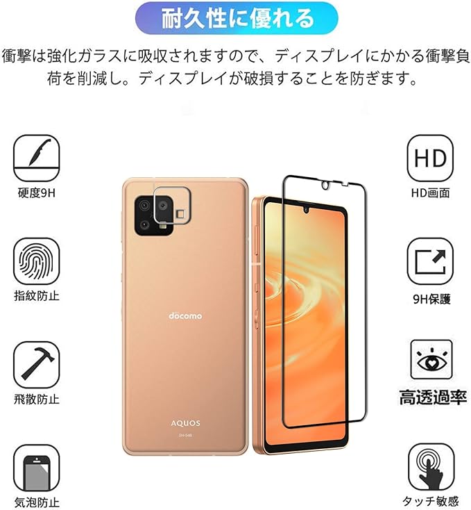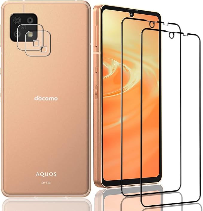 【4枚セット】AQUOS Sense6 SH-G05 SH-54B SH-M19 用の ガラスフィルム+Sense6 S SH-G07 用の レンズフィルム 表面硬度 9H【日本旭硝子素材採用】3D Touch対応 AQUOS Sense6 用の フィルム 耐衝撃 (SH-G05 SH-54B) 液晶保護フィルム 飛散防止 nutmeg(ブラック)